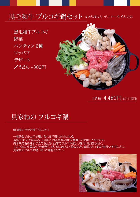 プルコギ/ご飯/スープ/韓国のり/パンチャン2種